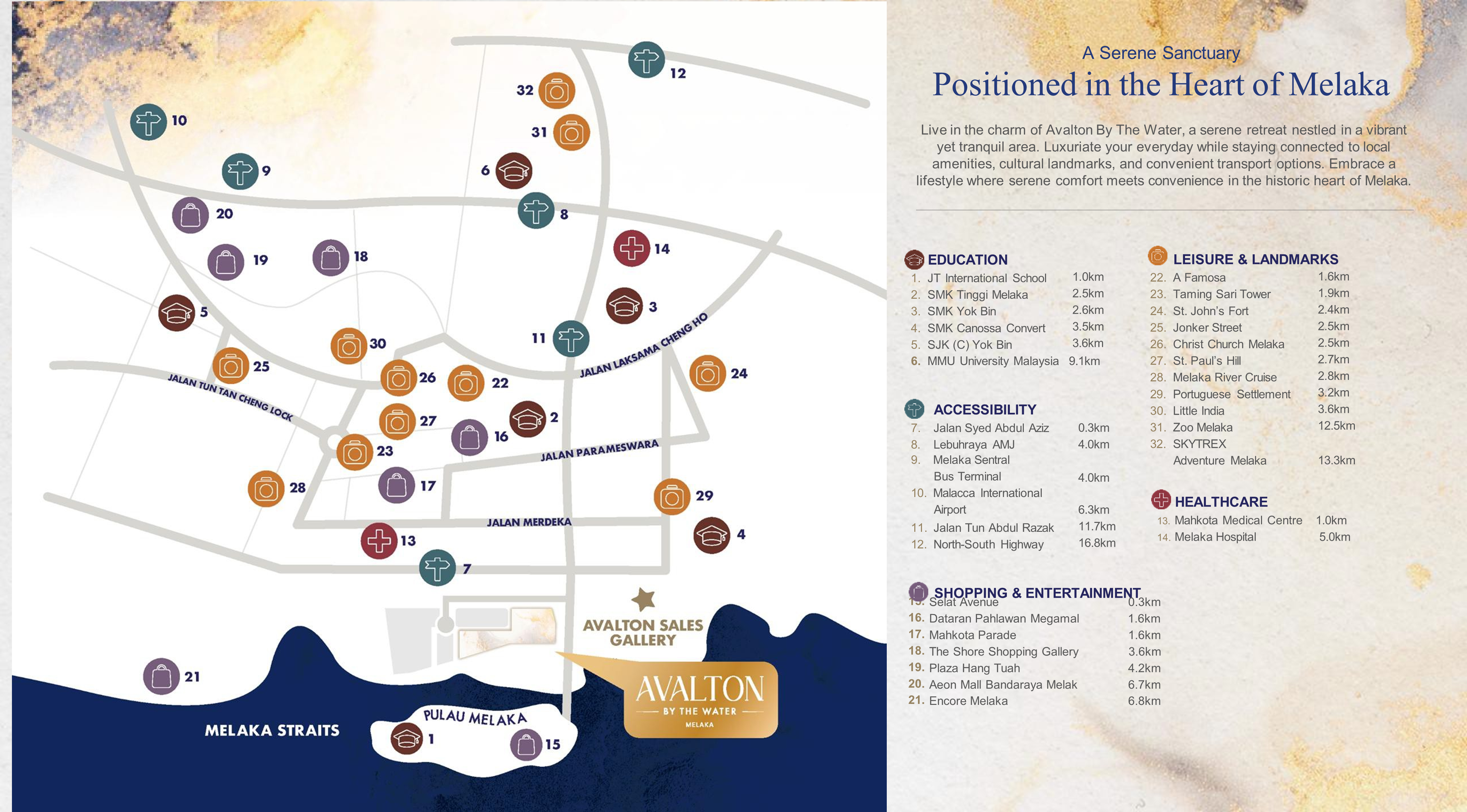 🏝️ Leisure & Landmarks: Close to Melaka’s cultural heritage sites and scenic waterfronts.